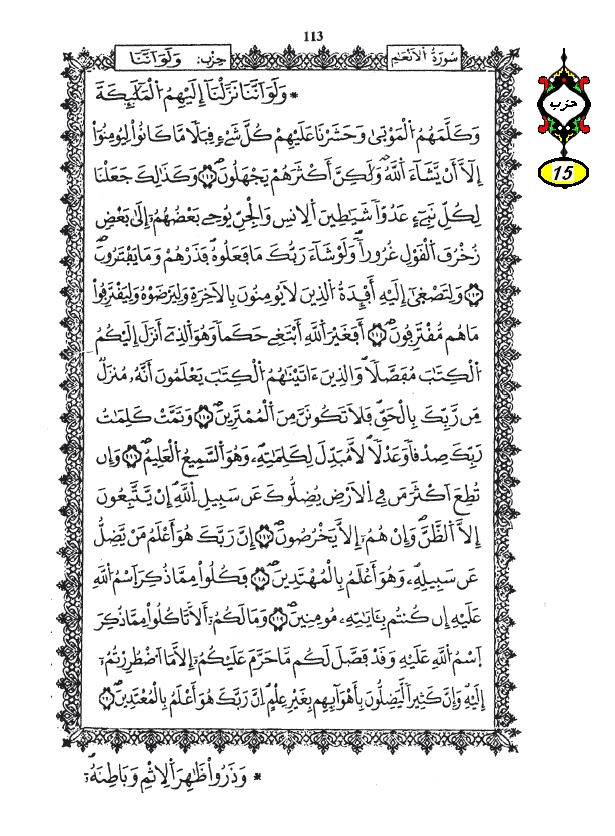 القرآن الكريم برواية ورش عن نافع مجزء الى أثمان حزب 15 ولو أننا نزلنا من سورة الأنعام