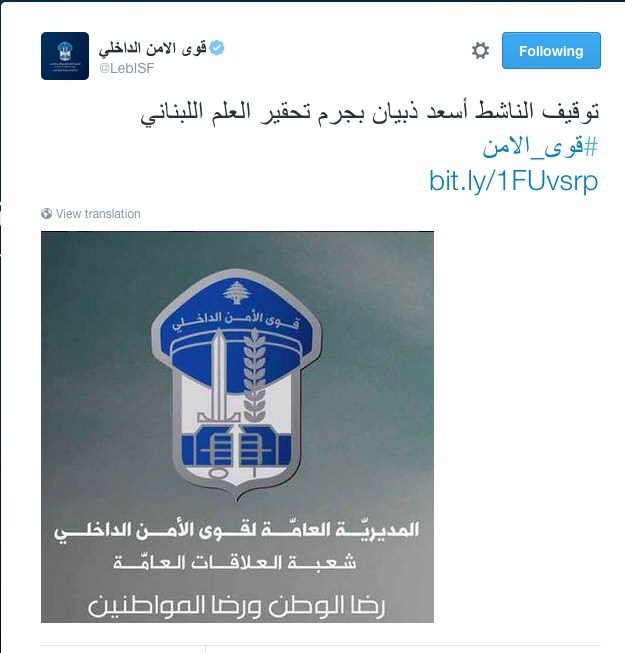 Habib Battah On Twitter Lebanese Police Lebisf Say Arrest Of Youstink Leader Assaad Thebian Due To Contempt Of Lebanese Flag Seriously Http T Co 9awtqcxhe3