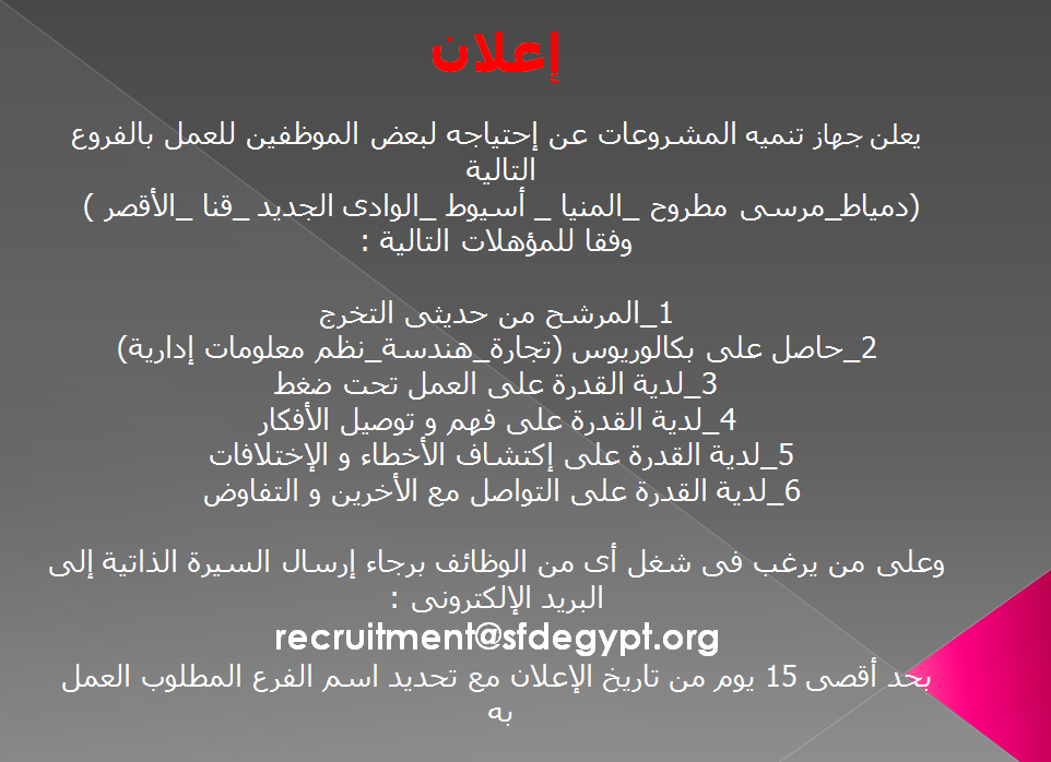 اعلان وظائف الصندوق الاجتماعى للتنمية للمؤهلات العليا من حديثى التخرج منشور فى 6 2 20189
