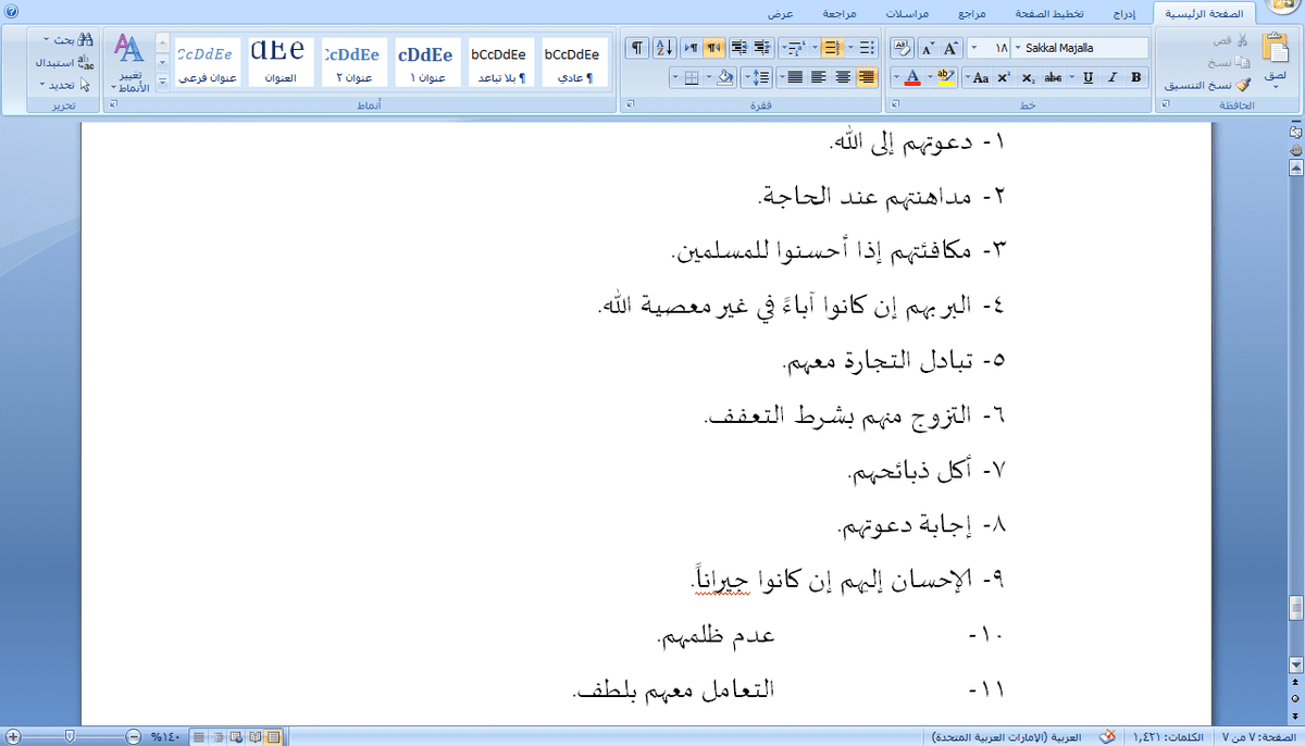 كيفية ترقيم الصفحات في الوورد المرسال