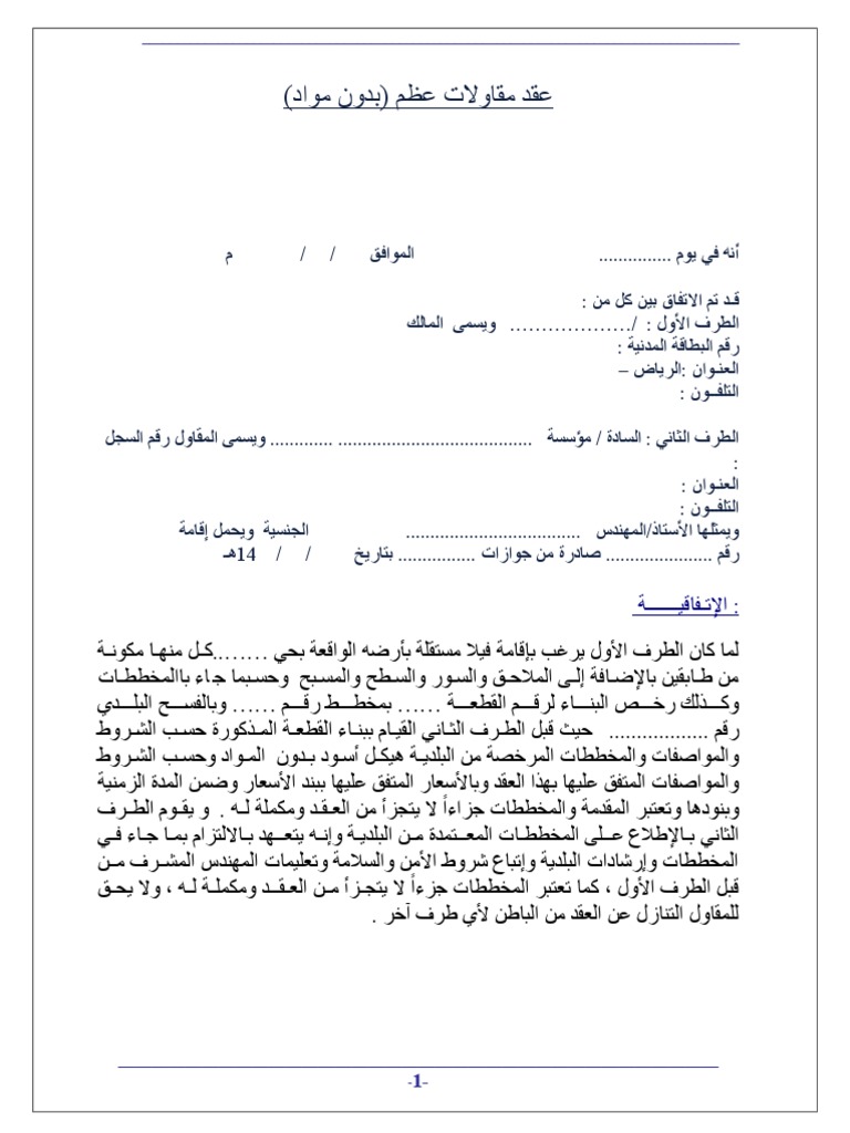 المقاول نموذج عقد عقد اتفاق بين طرفين