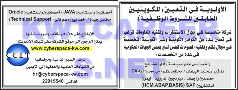 43 وظيفة خالية بالكويت في شركة تكنولوجيا معلومات كبري 8 يناير 2019